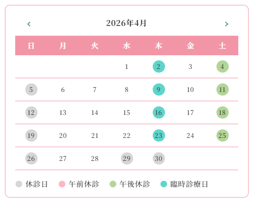 【重要】4月の診療日程(木曜診療実施)のお知らせ
